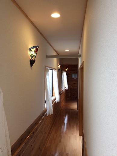 お風呂場に施工させていただいた お客様のお宅の廊下にバラのパネルのオーダーです。バラのブラケットが並ぶ廊下の途中にある 納戸のFIX窓へと 施工しました。この左側の 壁面FIX窓へ。奥様のお好きな 赤とピンクを取り入れてみました。若干、納戸側が暗いので スポットライトを当ててくださいました。ありがとうございました。 * かわもと工房のホームページへ *