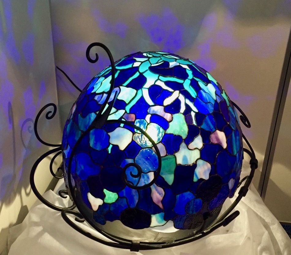 最近頂いたランプのご注文をご紹介します。お客様が一目惚れしてお買い上げくださったブルーのランプ。自然光にかざした様子。オリジナルベースは 特注のアイアン製です。使用したガラスは アメリカのウロボロス、ドイツのランバーツ、イタリアのモレッティーなどとてもゴージャスです。すでに納品させていただきましたブルーのランプに引き続き・・・グリーンのランプが完成!自然光にかざすとこんな感じ・・・。鋭意制作中!の様子(笑)お客様のお宅に設置させていただきました。壁に映るガラスの光と、床に落ちるアイアンベースの影が幻想的です。上から見た様子。天井にも光が映り込み、まるで水族館にいるよう。お客様のお好きなグリーンの濃淡で制作しました。お客様のご希望から3ピースのみ強めのイエローを入れさせていただきました。壁にぼんやりと映っているのが分かりますでしょうか?お客様にも大変喜んでいただけました。私も嬉しかったです。ただ今、もう1基 ブルーのランプを制作中です。頑張ります!!どうもありがとうございました。