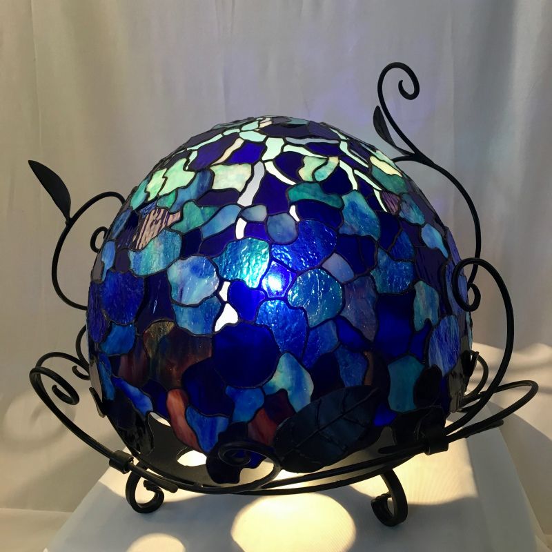 前回の緑色のランプに引き続き 今回は青色のランプのオーダーを頂きました。アメリカのウロボロス・ウィズマーク・ドイツのランバーツ・イタリアのモレッティーを使用しております。前回に引き続き、ベースはアイアンの特注品です。オーダーしてくださった奥様のお嬢様が 離島へとお嫁に行かれるそうで深い海をイメージされて青色のオーダーでした。お話を伺い、胸が熱くなってしまいました。ありがとうございました!おめでとうございます。どうぞお幸せに♡ステンドグラス工房かわもとのホームページはこちら