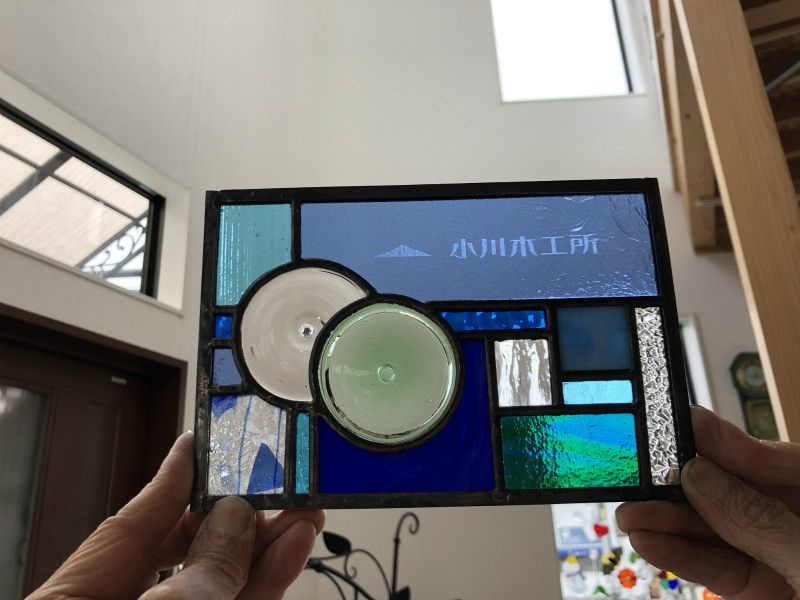 お近くに木工所を構える 「小川木工所」さまより椅子にはめ込むミニパネルのご注文を頂戴しました。青バージョン と アンバーバージョンサンドブラストを施し、オリジナリティーを高めました。背もたれの部分に。過日開催されました 家具メッセにて可愛く展示されていました♬毎週土曜日に出席している「経営者モーニングセミナー」にてお世話になっている小川木工所の小川社長と😊ありがとうございました!ステンドグラス工房かわもとのホームページはこちらステンドグラス工房かわもとのネットショップはこちら