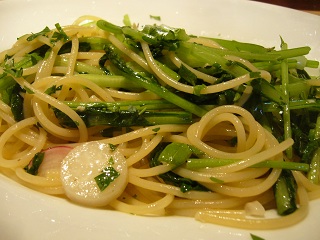 パスタは、有機野菜アンチョビぺペロンチーノ。