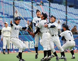 神宮大会決勝初日こそ雨で順延になったけどそれからは本当に秋晴れ。空が綺麗だぁ。結局先日の六大学新人戦でひいた風邪と出不精の為今年は一度も神宮に行かなかった。。【明治神宮大会 高校決勝】高知高校 10-5 報徳学園高知高校 初優勝!!初回から2ランとか凄かった。報徳先発岡田君…昨日まで凄い好投でしたが今日は初回からボコボコ…3回途中で福島君に替わりました。方や高知のエース國尾君も疲れか…今日は結構打たれてました。それにしても高知の打線。決して派手な選手が居るわけじゃぁないのに繋がる。報徳だって10安打してるんだから悪かった訳じゃないはず。高知は15安打だけど(笑)。この時期…島田監督優勝したのに“力の無いチームなので冬場にしっかり力をつけたい”だって。。ホントに謙虚だねぇ。。まだ34歳だって。来春楽しみです。またアルプスでナルコの応援するのかなぁ?【明治神宮大会 大学決勝】亜細亜大学 5-2 早稲田大学図らずも…東京六大学優勝校vs東都大学優勝校となった大学の部。正直夏早実が優勝したので大学日本一も早稲田だとつまらんなぁ…とか思ってました。笑それが…お約束通り(殴)亜細亜が強い!!o(≧∇≦o)(o≧∇≦)o早稲田も糸数立ち上がりバカバカ打って先制しましたが亜細亜!!二回に3ランホームランだぁよ!!豪快な野球健在でした。私は早稲田のような緻密なビシッとした野球より豪快な打てなきゃ負け~~みたいな試合が好きなので。。。しかも早稲田はエースで主将の宮本君先発。大学最後の試合両校とも気合い充分でした。8回に大谷君に替わるとき…宮本君何を思っていたんでしょう?両校投手が良いので安打も8本、5本と大差なかったんですけど堅いはずの早稲田の守りのエラーが絡んでの敗戦。それ以上に亜細亜…やっぱり不祥事後の頑張りと言うんでしょうかみんな凄く気合い入ってました。これで亜細亜大学日本一です。9回試合途中から宮本君…目から大粒の涙。。。そうそう巧くいかないのが勝負。高校、大学と早稲田にやられたらいやだぁよ(笑)。来年まで…公式戦は…無い…Σ( ̄□ ̄;) 寂しいなぁ。と、今日一番驚いたのは…夕方PC NEWSで見た藤原紀香さんと陣内智則さんが結婚へ(〇o〇;)