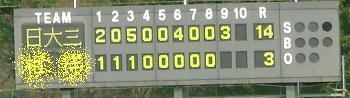 …… はじめスコアボード見て…イヤな予感がした… 日大三…先攻… 完敗でした 勝てる要素も見つけられませんでした… 久我山強かった… それだけでした あまりに見事な負けっぷりに終了後拍手してしまうくらい… …あとどれだけやったら先輩達に追い付くんだろうね やっぱり…余計な御世話だけど…今は三高ナインなら野球に没頭して… 何が悪いとかじゃなくて 気持ちの問題 今日の敗戦はきっと自分達が一番よく分かってるはず 何の為に三高に来たのか…三高ユニフォーム着て何をするのか… 頑張ってる人に頑張れって言えないけど… とてもそうは思えない今日この頃…今日の試合…そのうちUPしようかな…なんだか見たことも無かったことにしたいような…(笑)。不思議なのは…監督が笑っていたこと。。最後の攻撃まで…まぁいつものことか。。。これで長い長い冬を越えて…どんな三高になるのか…秋は良いね…夏ほど悲壮感が無いから。。。誰も泣いてないし。。それでもやっぱり……。まぁ力不足って事で。また春にスカッとするような野球を見せてください。今日は三年生も応援… 久我山エース和智君とリリーフの遠藤君2-9…8回コールド負け…