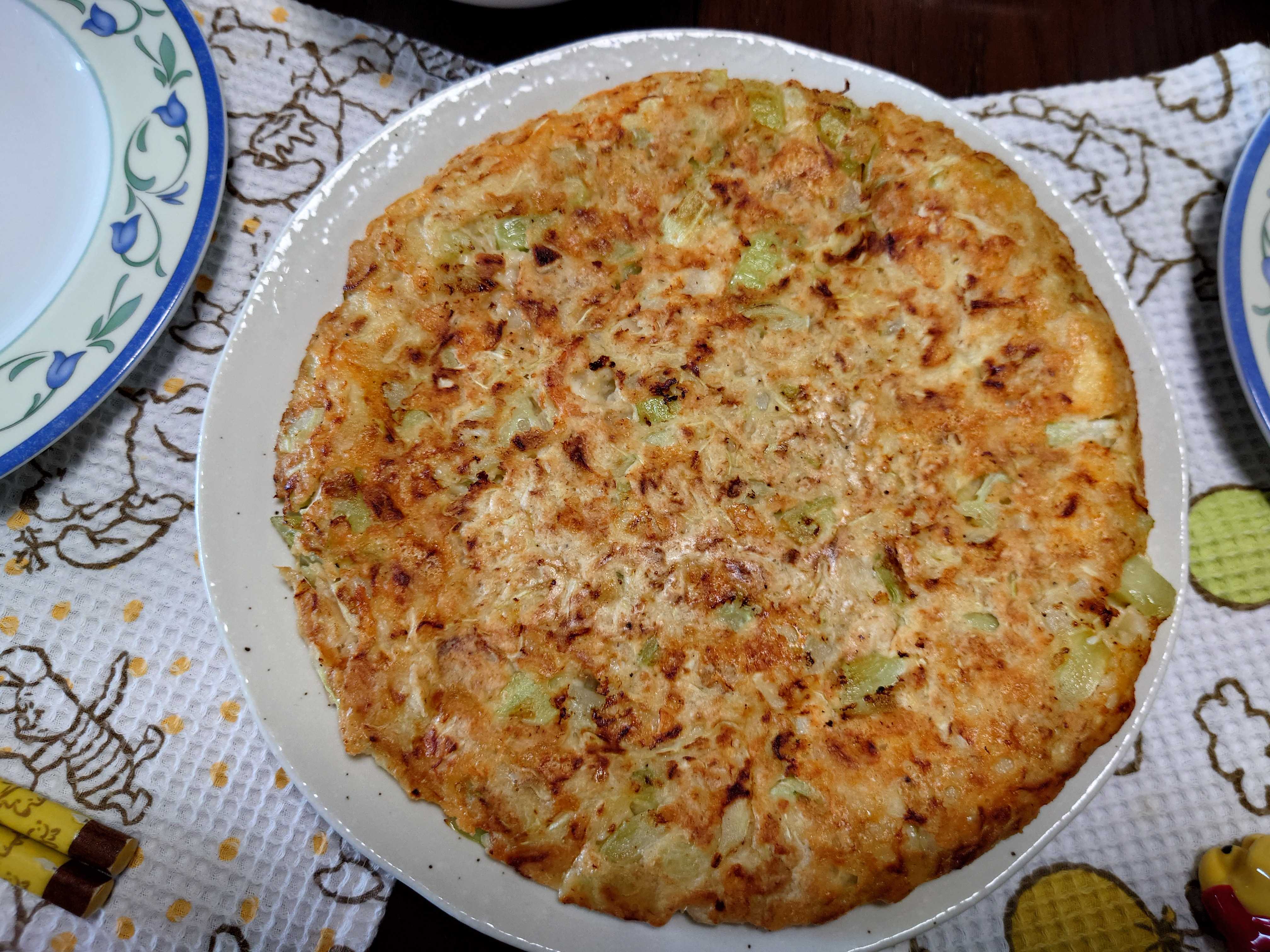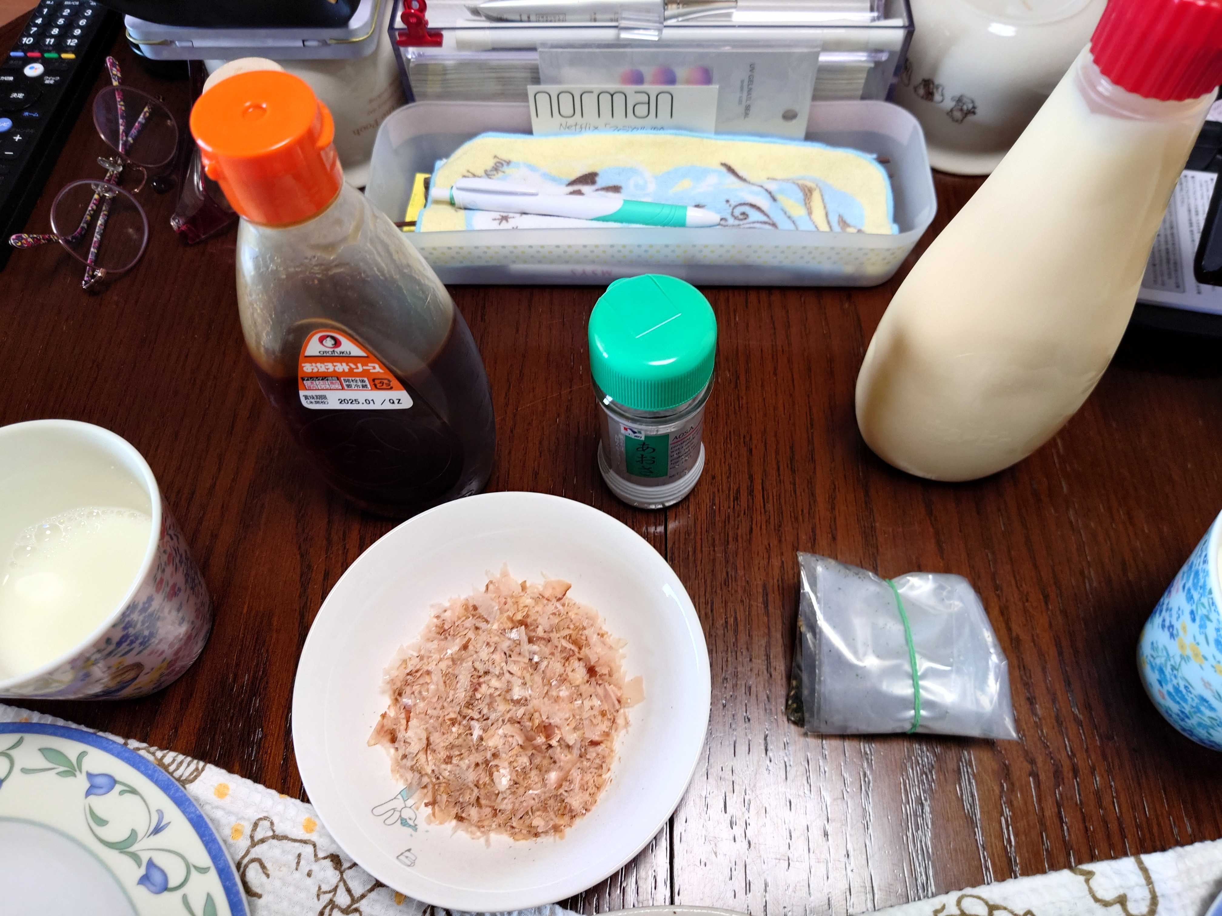 今朝の我が家の朝食は、「オートミールのお好み焼き風」。