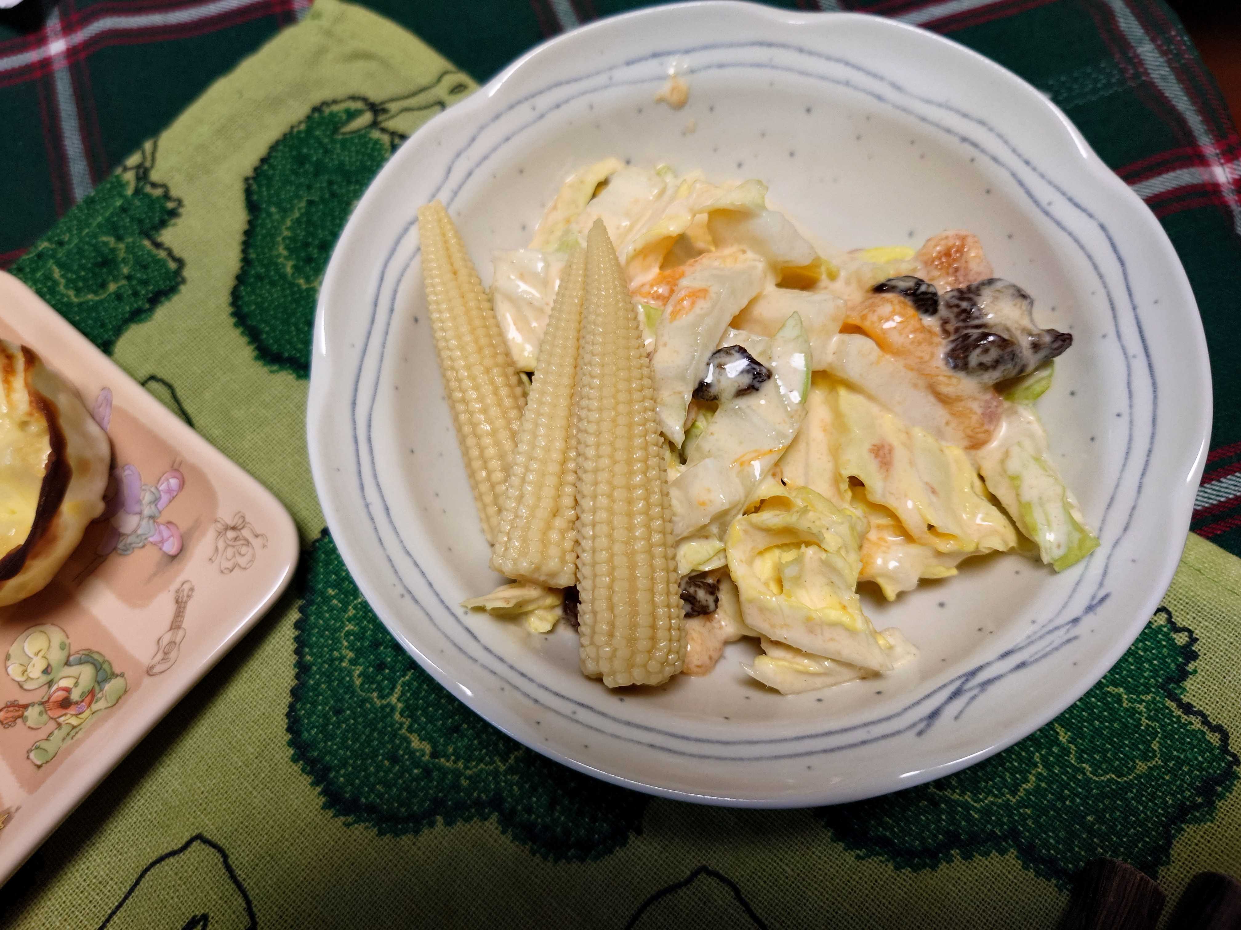 柿と白菜のサラダ。ヤングコーンも。