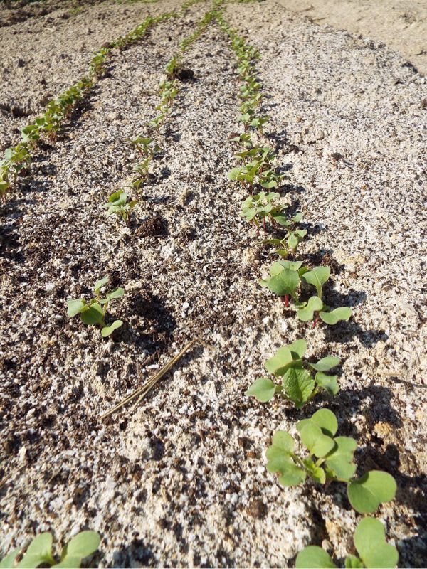 二本松農園での夢のような二泊三日が終わりました。こちら、二本松の武藤さんのりんご園木、一本一本の幹をそぎ、除染して、このようにあまーいりんごがたくさん実っていました。二本松農園で真剣にラディッシュの種をまく息子です。せっせと種まきしたラディッシュたち。3週間後には元気な姿をみせてくれるらしいです。放射能の基準値を下回っていても、さらに除去するため、農家はあらゆる方法を模索して振りそそいだ放射能を除去していますが、帰ってきてスーパーにいっても、新潟産・茨城産・埼玉産・山形産・北海道産・・っとお米がならんでいますが、不自然なほどに福島産がありません。二本松農園のナスは、びっくりするくらいおいしいのに、福島産の野菜も、一切置いてありません。とても悲しいです。