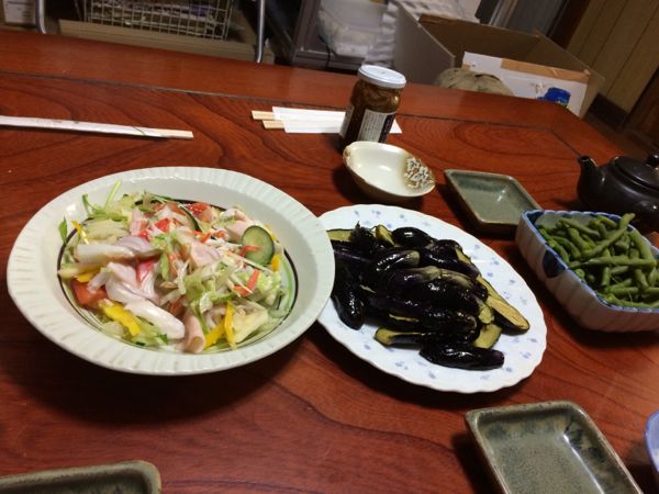 こちらは採れたて野菜を使った、おばあちゃん作のお食事。 農園事務所で頂きました。ほんとに美味しいのです。 私たちは行ってもほとんど役に立つことはなく、ひたすら食べてばかりいます。 おばあちゃんに、お母さんは?と聞かれたので、 熟年離婚して帰っちゃった話しをしました。 まあ、さすがに、彼氏作ったとか、60すぎても色気で世の中を渡って行こうとしてるなんて話しはできませんが。 歳をとるとね。自由にしてみたくなるときがあるんだよ。ばあちゃんは自由にしてみたくても、年金暮らしだからねえ。 なんて笑ってました。 おばあちゃん、優しいなあ。 そんなに優しくされると、泣きたくなるときがあるよ。 こういう人って、昔話の中だけじゃなくて、ほんとにいるんだ。 でも、みんな優しいけど、私、なんにもできないなあ。みんな、困ってるのに 私は無力で、、、
