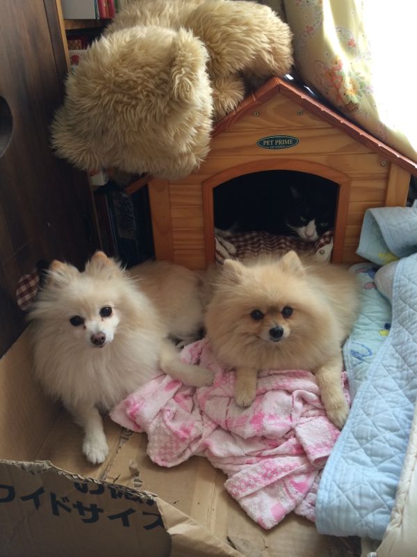 みんな仲良し、、、と誤解されそうなシーン。 あの子を失って一年五ヶ月がたちました。 叔父さんが死んで八ヶ月。 歳月が流れるとは、失うということなのかなと 考えます。この喪失感は何をもっても埋めることができません。 なにやら作業の多いこの時期に、特別時間と労力を費やすのは、毎年恒例のクリスマスカード。 昨年はあの子がいない寂しさに、クリスマスカード作りをボイコット。パパが作りました。 今年は、住所録データが消え、作業倍増。 やっとおわりました。 新顔のミルクのほか、里親募集中のペンちゃんも加わり、やけに大所帯なので、もう集合写真は諦め、、、 年賀状じゃないから、なんでもありで、今はもう私の首にぶらさがっているあの子の写真も載せちゃいました。 年賀状は、人が死んだら新年めでたくないとか、死んだ人載せないとか、ややこしくて意味わからん規則が多くてウンザリです。そして、くじつきハガキを使うべきとか、全く理解に苦しみます。 クリスマスは誰が死んでも生まれてもめでたいです。永遠に変わらないものだけが大切なものです。くじなんていらないものです。