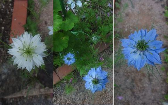 ブルーも咲いた。ニゲラは一重と八重があったのだ。