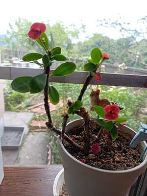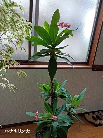 Mさんのお宅にあるこのハナキリンは 1.5メートルほど ある。茎も葉っぱも太い。
