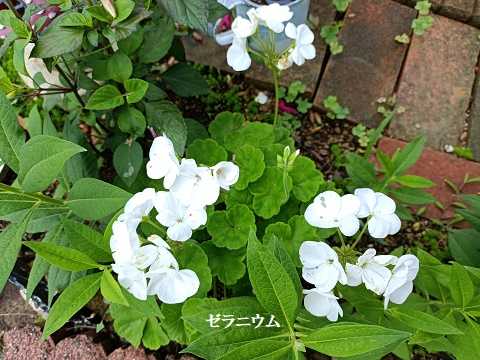 白のゼラニウムを挿して地植えしていた。