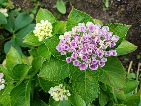 色のついたので8cmほどしかない小柄な紫陽花。