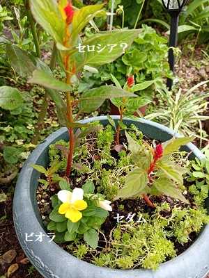 セダムがあちこちにあるので、鉢の土が乾かないように