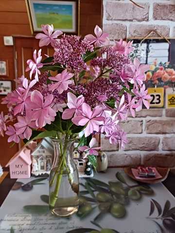 小ぶりの紫陽花(名前が不明)は遅く咲き始めたので