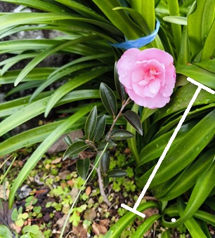 28cmほどの挿した山茶花。乙女山茶花のよう。