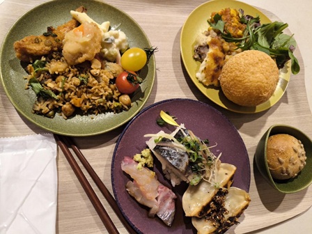 ご飯はロバットのボタンで小なめ、並み、大盛りと