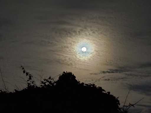 7時ごろ外に出たら、月に輪が出来ていて明るかった。