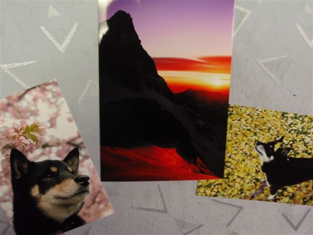 「黒柴トマトとママの散歩道」のろみさんのブログのクイズに応募、残念賞でしたが、写真を頂きました。東京に出かける用事があったので、渋谷まで行って月箱さんに寄り、ろみさんにお会いしました。残念賞の写真槍ヶ岳のを希望しそれをいただきました。 写真を入れる額がまだないので、とりあえずトマトちゃんの写真と一緒に記念撮影。トマトちゃんがお父さんの写真を見ているようでしょう?桜の写真も、銀杏の写真も、モデルのトマトちゃんの表情がとても良く、さすが「ムー」さんです。写真にはその撮り手の人柄や気持ちが出る気がします。トマトちゃんに対する愛情がいっぱい写っている様に思えました。 月箱さんの箱のオーナーに頼んでいただいたトマトちゃんのマスコット、落とさないようにちゃんと携帯につけました。もう作っていただけないようなので、大切にします。それから写真と一緒にいただいた、和紙で作るお雛様、作ってみました。ちょっと下手でしたが、あと一月ちょっとでひな祭りですから飾ってみました。 難しくはないのですが、きちんと作るにはピンセットとか道具を必要としますね。神経質であるらしいA型人間ですが、大雑把な私でした。
