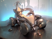 ロボットと兄ちゃんが去ると、いよいよメインショーの始まりだ。未来型自動車「i-Unit」が繰り広げるパフォーマンスだ。スタンドの通路にまで登場する。電飾されたその車は見事なシンクロを見せる。早いスピードでぎりぎりクロスしたりする。このパフォーマンスも知らない人はプログラミングされた軌道を移動しているだけだと思うだろう。でも実は「絶対にぶつからない車」のデモンストレーションなのだ。これも事前に説明が無い。トヨタはなんとも潔い。後から見たパビリオンは殆どが自らの技術力をアピールしまくっていた。そういう点でもトヨタ館は素晴らしい。また、i-Unitのパフォーマンスに合わせて、ワイヤーロープに繋がれた生身(衣装は着てます)の人間が演舞を見せる。これがまた凄く素晴らしい!なぜ空中であんなにゆっくりと美しい演舞が出来るのだろう…。