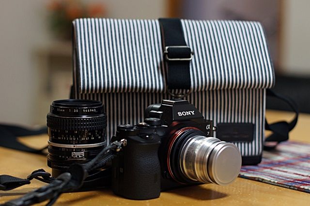 CoolpixAはデジカメポーチに入れてしまえば、どんなバックにも大抵忍び込ませる事ができるので、バック選びに悩むことはない。しかしα7に適したサイズのデジカメポーチがまだ手元にないのだ。また、折角レンズ交換できるのだから交換レンズの一つも一緒に持ち出したい。