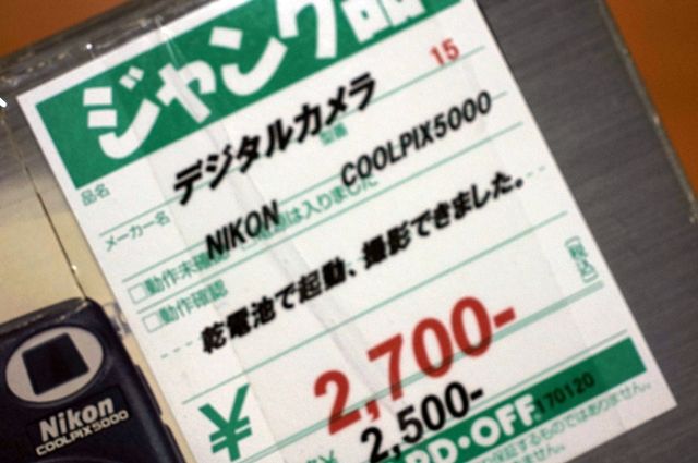 ふと棚の上を見るとCoolpix5000の元箱発見。一昔前なら躊躇することなく釣り上げたんだが、さすがに躊躇われるわな。とりあえず箱を見回すと「ジャンク」のお品書きがある。乾電池で撮影できましたがジャンクです。まぁこの時代なら動作確認済でもジャンク扱いだわね。乾電池で確認済ね、乾電池、何ぃ乾電池だと。