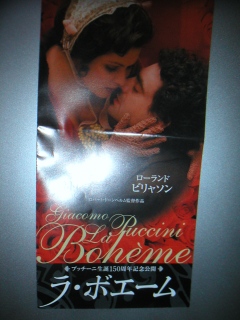 新宿のテアトルタイムズスクエアにて、プッチーニの人気作“ラ・ボエーム”を観てきましたやっぱり少しでもイタリア語を勉強してみると、所々理解できたりするととってもうれしいものです。いろんな面白い発音のあるイタリア語ですが、歌にすると風格のあるものに変身するんですね~いつかはスカラ座でほんものを観てみたいと思っていますが、チケットを取るのはミラノの住人でも難しいとのこと。映画だけでも観れて幸せかも・・・皆さんもいかがですか