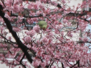 通勤途中に満開の桜がありまして、なにかごそごそと動くものが・・・とよく見れば、なんとウグイスそれもこの木一本に5~6羽もいますカメラを向けたら、真正面に向いてくれました。可愛いいっぺんに春の到来を感じさせてくれました!
