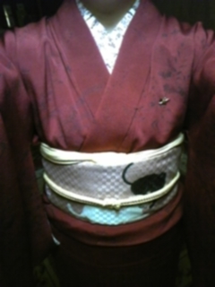 Kちゃんの誕生日会をしに上京。 訪問着を洗いに出す前にもっかい着よう~と思っていたのをすっかり忘れてて。思い出したのが、今日の主賓に会ってからってゆーのは遅すぎです。 ま、結城紬も着たかったんだけどさ。