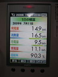 昨日結構いい天気でした。もうちょっとで自給率100%!がんばれ!【昨日の天気】 天気:うす曇時々晴れ 最高気温:29.1度 最低気温:20.5度 日照時間:10.5時間 降水量:0.0mm【昨日の発電】