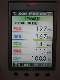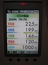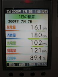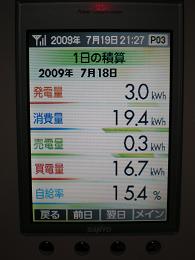 なんか雨が多かったなぁあ、梅雨だから当たり前か・・・【昨日の天気】 天気:曇り一時霧雨 最高気温:23.8度 最低気温:19.2度 日照時間:0.0時間 降水量:0.0mm【昨日の発電】それで、7月は初めての1ヶ月まるまるの稼動となりました。そこで、7月のまとめ~やはり梅雨のせいか自給率は65%・・・まあまあですかね【7月の天気】最高気温:31.4度最低気温:16.2度日照時間:105.3時間降水量:130.5mm【7月の発電】