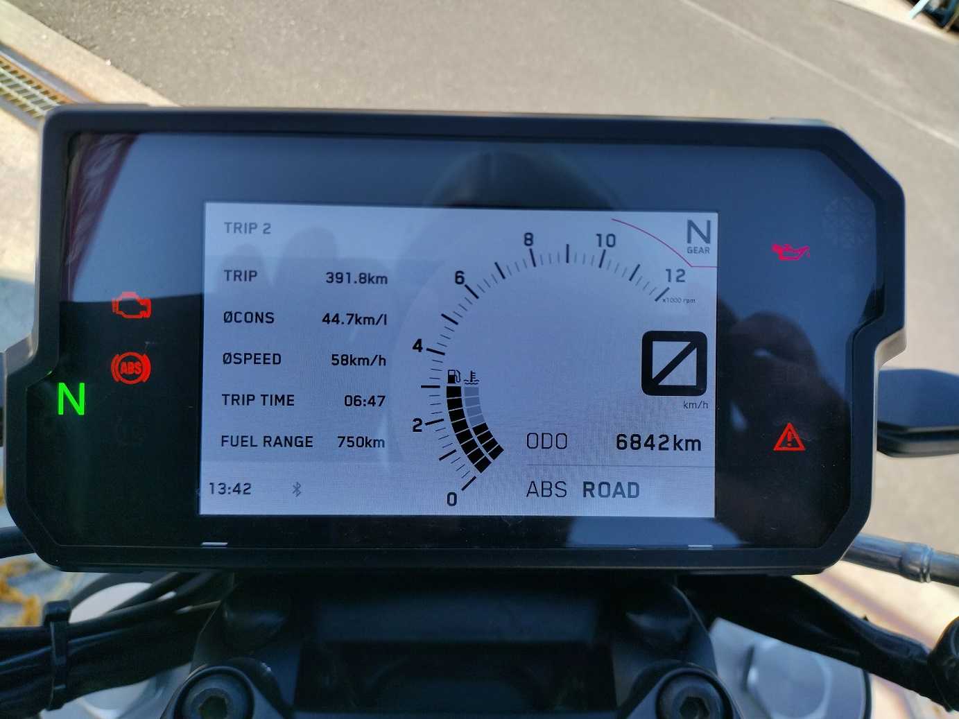 2025/8/24ツーリングの帰りに給油。走行距離 391.8km 給油 9.14L 燃費 42.867km/L燃費表示は 44.7km/L総走行距離 6470.6km 給油 154.05L 燃費 42.003km/L