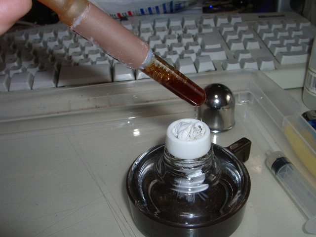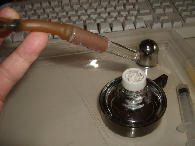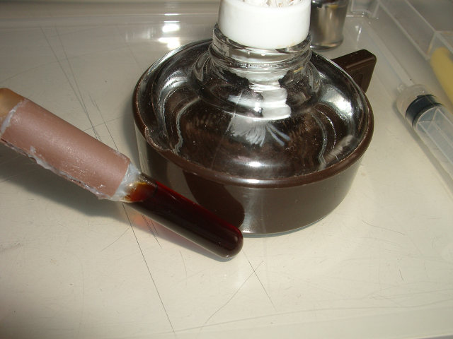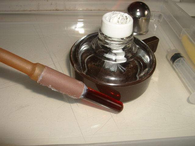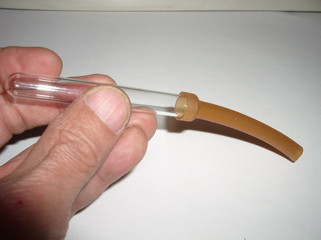 一度差し込んでみて確認した後、瞬間接着剤を試験管側に塗った後差し込みます。