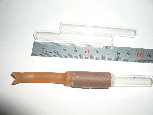 口径は、外径で8mmの物です。内径は約6mmです。長さは試験管と同じ70mm程度にカットしました。
