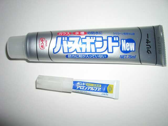 あとは、シリコンシーラントと、ゼリー状の何処でも売っている瞬間接着剤です。