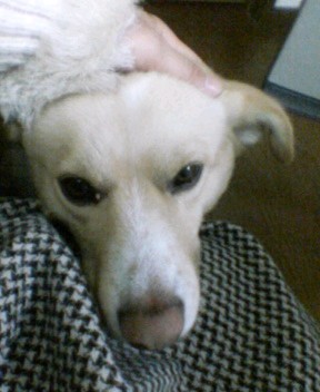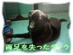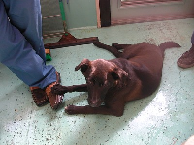 今日は、ARK-ANGELSのお手伝いに今里の事務所に行って来ました。まず少しスタッフの方とお話をして交通事故に合って保護された黒ラブちゃんのお話を聞きました。*********************************************************************去年の暮れ車に引かれ動けない所を通行人からの通報で処分施設に入っていた黒ラブのミックス。クックちゃん(仮名)後ろ足が立たず、道端で小さな声できゅんきゅん泣いていました通行人からの通報で処分施設が保護しました。(この場合なぜ、事故の車の運転手でないのか不思議ですが)ARK-ANGELSのスタッフが施設に行くと暖かい所に置いてもらっていました事故で相当な痛みの所に、このまま処分はさせられないと、とりあえずARK-ANGELSのスタッフが病院へお世話して下さった職員の方の足元にはっていって靴をなめていたんだそうです。(「ありがとう」って言いたかったんでしょうね)背骨が完全に折れて神経も切れているそうです。(せめて事故を起こした運転手が、病院へ連れて行くとかしていたら、もう少し何か変わったんでは。と素人は考えます)回復の見込み無しです。車イスが必要になるそうです。今は病院へ入院していますアークエンジェルス活動日誌を呼んでみて下さい。*********************************************************************もう1件1月4日の未明に火事で飼い主が焼け死んで、犬が残された現場に行きました。成犬らしきミックス2匹と、子犬3匹。どの子も飼い主から虐待されていたらしく、ものすごく人間を怖がります。ガレージのシャッターを開け、フェンスをしている上から水と餌を入れます。先を争うように食べる、わん達。壮絶でした。みんな虐待されていたのか、極度に人間を怖がり、スタッフもかまれているとの事なので、中に入る事もできず、中は、うんちとおしっこそれに火事の後の、すすけた何ともいえない臭い。そして改めて、毛布の下に子犬らしき犬の亡骸を見つけました。飼い主は犬をどこからか拾ってきては、虐待したり殺したりしていた様です言葉は悪いですが、きっと火事で焼け死んで地獄で今頃苦しんでると思います。もう涙が止まりませんでした。この状況では今は、フードと水を入れてあげるのが精一杯。。。今日程、心から人間のおろかさを恨みました。自分の無力さを恨みました。現場を離れて別件で保護された、フレンチブルのボビーを抱きしめました。暖かくて少し癒されました。この子も保護犬です。ちょっと、「おっちゃん顔」ですが、超らぶりぃです。6時頃家に帰って、けんけんの顔みて癒されました。抱きしめようとしたら、嫌がって、そんなもんええからご飯はよくれと。。「あんたは幸せやね。母ちゃんがついてるもんね」「・・・聞いてません(他のわん達のにおいの付いた、Gパンが気になるようです)」母ちゃんが感傷に浸っていても、けんけんはいつも通りです。明日は又元気取り戻して又報告します