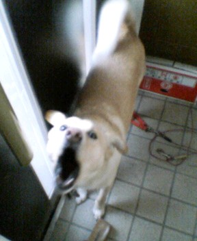 昨日は訓練師さんに褒められた話をしたら、皆様からも、「すご~い」とか「がんばったね~」とかお褒めの言葉を頂き、わたくしとしてはすっかり有頂天になって、ひょっとして、けんけんって天才?とか思っていたのですがやっぱり、けんけんはただの暴れん坊でした~なにもの?何でもいいから、はやく 散歩連れてけ~散歩さんぽ~~なんでもいいけど、けんけん怖いです。顔が。。。完全に犬じゃなくなってます~怪獣ぽい。**********************************************************************一時預かりさん募集*ARK-ANGELSでは、一時預かりさんを募集しています。短期間でも預かりできる方はおられませんか?処分施設の子達を救う為には、一時預かりさんがどうしても必要です。里親さんを見つけて新しい家族の元に送り出す為にどうしても必要です。どうか御協力お願い致します。**********************************************************************事務所のお手伝いボランティアさん募集*午前10時頃から午後3時頃まで、事務所でのお手伝いのボランティアさんを募集しています。1日でも2日でも良いのです。電話応対、物品整理、物品販売等のお手伝いです。ぜひご支援お願い致します。お手伝頂けるという方はARK-ANGELSまでご連絡下さい。*********************************************************************下半身不随のクックちゃん金曜日にとうとう病院から退院します~しばらくは、まぁさんの所に預かられます~引き続きご支援お願い致します。クック~ガンバ!