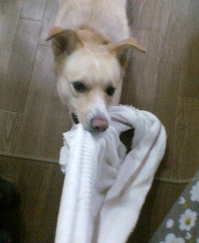 今日は午前中は雨でした~けんけん、今雨降ってるからやんだらお散歩行こうね~もうちょっと我慢してね~何でやねん!何でやねん!何で散歩行かへんねん!!(けんけん)バスタオルがボロボロなのでいつの間にかぐるぐるに(母)雨降ってるからいけないの~(母)え?雨?降ってんの?(けんけん)雨が降ってる事を分かってもらう為に、窓開けています~(ちょっと寒いー母)ぼろぼろのバスタオルは巻いたままです。ちなみにバスタオルが、ボロボロなのは、もちろんけんけんが破ったからでございます~やっぱり、かっぱ買わないといけないかな~