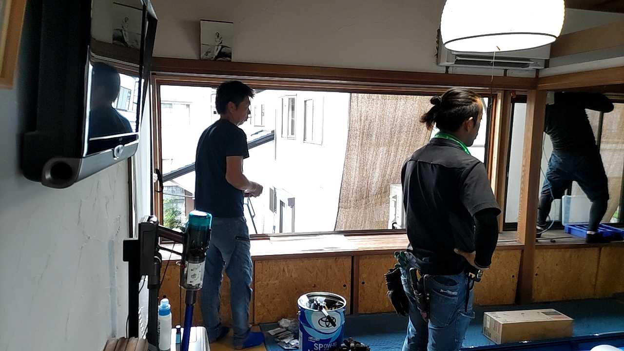 窓屋さんと大工さんが総勢7人がかりで施工をはじめ