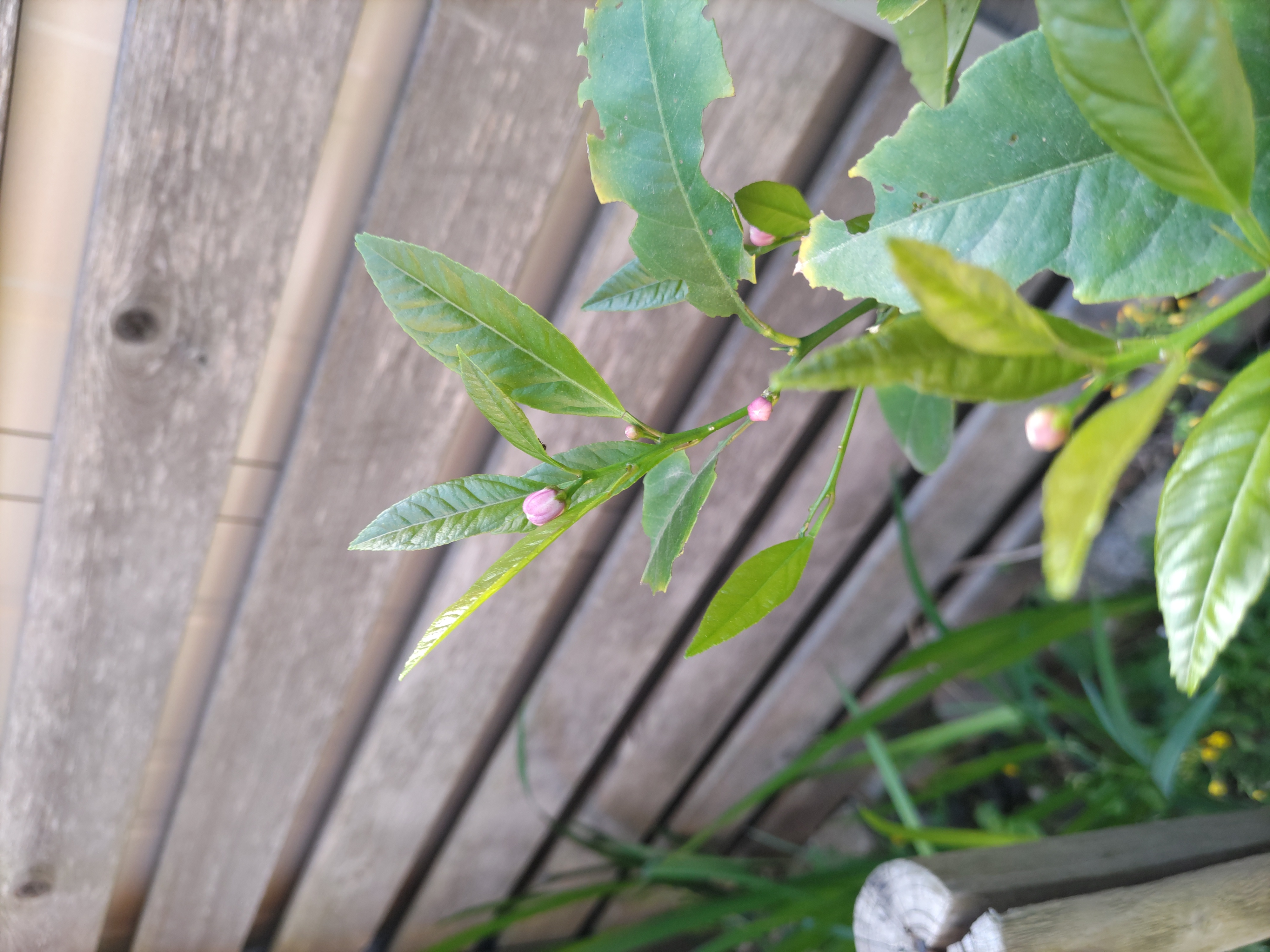 レモンを植えて7年程たちますが5年間花が咲いていません。アゲハ蝶を優先した罰です。そこで心を鬼にしてアゲハ蝶よりレモンの花を優先することにしました。去年から、幼虫は駆除し卵は見つけ次第取り除く。さらに、ちゃんと剪定(YouTube頼りですけど)し肥料も加え冬を超しました。そして遂に、5年ぶりに花芽を確認しました。レモンの花芽は新芽の先に行くことを初めて知りました・・お恥ずかしい。アゲハ蝶がやってきては卵を産み付けていきますが、その都度取り除いています。このまま立派なレモンになりますように。