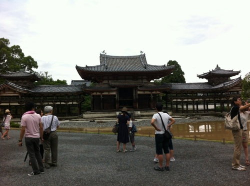 宇治の平等院・鳳凰堂。十円硬貨の図柄になっているということでも、有名ですね。でも、この鳳凰堂、十円硬貨だけではなく、一万円札の図柄としても使われています。裏面に印刷されている鳳凰の姿。これが、鳳凰堂の屋根につけられている鳳凰をデザインしたものなんですね。平等院は、ユネスコの世界遺産にも登録されていますし、鳳凰堂は、もちろん国宝でもあります。まさに、日本を代表する歴史建造物なのだと思います。平等院を訪ねるのは、何年ぶりでしょうか。一度、一人でじっくりと見て回りたいと思い、先日、宇治へと行ってきました。歴史の年輪を感じさせる建物。ひとつひとつが、まさに平安時代と出会えるといった感じがしてきます。この鳳凰堂、中に入ることも出来るんです。鳳凰堂の内部。もちろん、写真撮影は禁止なのですが、本尊の阿弥陀如来とも出会い、空中を舞ういくつもの仏像・雲中供養菩薩にもお会いしてきました。そして、その壁面と天井には、九種類の菩薩来迎図が描かれています。落剝が進んでいるので、その片鱗くらいしかわからないですが、でも、この鳳凰堂の凄いところは、一度も火災や戦禍にあったことがなく、すべてが、平安時代そのままの形で残されているということです。パンフレットの写真から、その様子を少し、ご紹介しましょう。国宝・阿弥陀如来坐像と鳳凰堂の内部です。おだやかな表情ながらも、威厳に満ちた阿弥陀様。平安期仏像の最高峰とも言われている阿弥陀像です。この阿弥陀像を作ったのが、平安時代を代表する仏師といわれている、定朝という人。木を彫って仏像を作る場合には、どうしてもこれほど大きな仏像は作れないのですが、木をつなぎ合わせて、仏像を作ることができれば、大きな仏像を作ることも可能です。この手法が「寄木造」と呼ばれているものですが、この「寄木造」の手法を完成させた人が、定朝であったのだといわれています。その後の仏像彫刻に絶大な影響を残した定朝。この阿弥陀如来坐像は、定朝の作ということが確認できる唯一の作品なのだそうです。そして、壁面にいくつも並んでいるのが「雲中供養菩薩」。全52体からなる様々な菩薩像で、その一つ一つが、国宝に指定されているのだそうです。少し、クローズアップしてみましょう雲に乗った様々な菩薩たち。琴・琵琶・笛・笙・太鼓など楽器を奏でている菩薩。宝珠・幡などを持ち祈っている菩薩。舞っている菩薩、合掌している菩薩。それぞれが、思い思いの姿をみせていてその伸びやかなさまは、とても魅力的です。平等院内にある博物館(鳳翔館)では、そのいくつかが常時展示されていて、そこでは、「雲中供養菩薩」をごく間近で見ることができます。平等院が建立されたのは、平安後期にあたる永承7年(1052年)のこと。時の関白・藤原頼通が、父道長の別荘であった宇治殿を寺院に改め創建したものであります。当時は、優雅な王朝文化が花開いていた時代ではありましたが、しかし、その反面、天災や飢餓などの社会不安が広がり、仏法が廃れ末法の世が訪れると信じられていた時代でもありました。そうした、時代背景の中、広まってきていたのが浄土教信仰。平等院は、極楽浄土を強く願う人々の思いが込められたものであったのだということができます。鳳凰堂の前に池が広がるという配置になっているのも、経典に描かれていた極楽浄土の世界を模したもので、それを、ここに再現しようとして作られたものなのでありました。平安期、浄土教美術の頂点が集約されている、この鳳凰堂。深く刻まれた歴史がそこにあるといった感じが、ひしひしと伝わってきて、内面からも沸き上がってくるような、鳳凰堂にはそんな迫力がありました。この鳳凰堂、来月9月3日より、屋根の葺き替えや塗装など、1年半に及ぶ修理に入るとのこと。しばらくは、その姿が見れなくなるのですが、改装なった鳳凰堂がどんな姿を見せてくれるのか、ぜひ、楽しみにしたいものだと思っています。