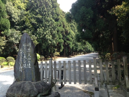 秀吉が城下町を築いていた頃の伏見の町は、政治・経済・商流など、あらゆる面において日本の中心であったようです。徳川氏の時代になってからでも、伏見は政治の中心であり続け、伏見城が破却される江戸時代の始め頃まで、城下町伏見の繁栄は続いていたのだといいます。伏見に城が築かれていた期間というのは、およそ30年くらい。しかし、その間に伏見城は、幾度かの興廃を繰り返し、その度ごとに再建されたという、波乱に満ちた推移を経てきた城でもありました。以下、伏見城の変遷の歴史について、少しまとめてみたいと思います。***********伏見の城の成り立ちは、秀吉の隠居所に始まります。当時、秀吉は、甥である秀次に政権の座を譲り、隠居所を作って、伏見に移ってきていました。この隠居所は、宇治川のほとり、指月と呼ばれる丘陵に築かれました。ところが、謀反の疑いありという嫌疑をかけられ秀次が失脚したことから、秀吉が政権の中枢に復活し、これ以後、秀吉のいる伏見が政治の中心となっていきます。指月の隠居所も、壮麗な城へと再構築され、諸大名が、続々と伏見に移住してきます。ところが、この指月城、文禄5年に京都を襲った大地震により、あえなく倒壊してしまうことになりました。次いで、指月に代わって城が築かれることになったのは、指月の北西に位置する小高い丘陵、木幡山でありました。この城を中心にして、伏見には本格的な城下町が形成されていきます。しかし、そうした中で、秀吉が病没。秀吉亡き後の政権の座をめぐり、やがて、関ヶ原の戦いへと政情が推移していきます。関ケ原の前哨戦となった伏見城の戦い。家康の意を受けた鳥居元忠が、伏見に入城し、頑強な抵抗により、三成側の軍勢を10日以上伏見に釘付けにしました。やがて、激闘の末、元忠が切腹して、城は落城。伏見城は、炎上します。しかし、この後、家康は、再び木幡山に城を築城しました。新たに竣工した伏見城に、入城する家康。家康は、ここで政務を取りはじめます。伏見にあって、天下に指令を出す。このことは、天下の主となったということを、世間に印象付けるという意味があったのでしょうし、それだけの都市基盤が、伏見の町に備わっていたのであろうと思われます。征夷大将軍となり政務をとっている間、家康は、ほとんど伏見城で過ごしていたのだといい、また、秀忠・家光も、征夷大将軍の宣下を、ここで受けています。しかし、徳川政権の体制も確立されてきたということでしょう。元和9年(1623年)、一国一城令が発布され、これにより、伏見城は廃城となり、破却・解体されることとなりました。今は、往時の姿を全く留めない伏見城ではありますが、それでも、その建物は、京都を中心として色々な神社や寺院に移築されていて、わずかではあるものの、その面影を垣間見ることができます。***********御香宮神社を出たあと、桃山御陵にやってきました。桃山御陵というのは、明治天皇とその后である昭憲皇太后が葬られている陵墓なのでありますが、この御陵のある山というのが、木幡山。そうです。ここは元々伏見城があった場所なのです。陵墓に向かう参道には、木々が生い茂り、その敷地は、まるで古代天皇の陵のように広大です。ゆるやかな坂道を、しばらく登っていきます。ここが、元は城であったという雰囲気は、確かにありますね。参道のところどころには、大きな石が並べられていて、「伏見城石垣に使用されていたと思われる石材」という宮内庁の説明板が立てられていました。明治天皇陵に着きました。清々しく、清らかな陵墓ですね。この前に立つと、心が清められるような、そんな雰囲気があります。明治天皇が崩御されたのは、明治45年(1912年)のことでしたが、その年のうち、ここに埋葬されたといいます。墓所を京都に、というのは、明治天皇の意志によるものだったようで、元々ここが宮内庁の管理地であったため、用地として適当であると考えられたのでしょう。明治天皇陵の前は、ちょっとした展望台のような感じになっていて、そこからは、京都近郊の町の景観を見晴らすことができます。ここは、かつて、秀吉が臨終を迎えた場所であり、鳥居元忠が、奮闘切腹をした場所であり、また、家康が将軍として君臨した場所でもありました。そうした数々の歴史ドラマを包み込みながらも、今は、天皇陵として静謐の場になっています。歴史のうつろいの不思議さを感じさせる、そんな異空間であるかのようにも感じられる桃山御陵。多くの緑に包まれた、とてもきれいで、のびやかな御陵でありました。