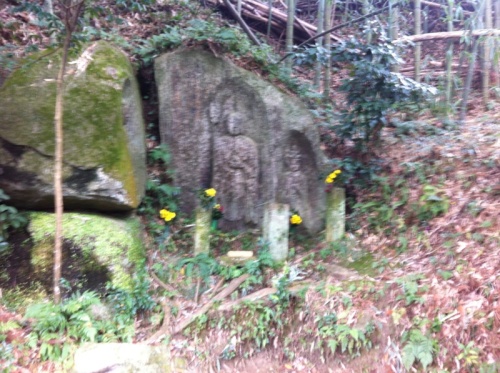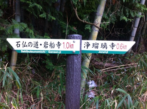 山あいにある緑豊かな当尾の里は、多くの石仏たちにも出会える、のどかな山里です。木津川市の旅。浄瑠璃寺を訪ねたあとは、石仏をいくつか見つけていきながら、あじさい寺としても知られる岩船寺(がんせんじ)を目指して、里の小径を散策しました。昔ながらの山村といった風景が広がっています。空気がきれいで、素朴な感じの里の小径ですね。この当尾という地区は、奈良・平安の頃から寺院が建てられていたところで、南都六宗と呼ばれた奈良仏教からの影響を強く受けてきた地域でありました。また、その一方では、世俗化した奈良仏教に反発した僧たちが、奈良を逃れ、ここに草庵を結んだといい、反奈良仏教の僧侶たちが多く隠棲した地でもあったようです。そうしたことから、この地に寺や修行場が多く建てられ、かつては、ここを行き交う人も多かったということで、そうした人々を迎えるため、あるいは、その道しるべとして、いくつもの石仏が、この地に作られたということのようです。歩いていると、さっそく、石仏に出会いました。「薮の中三尊」と名付けられた石仏です。当尾の石仏というのは、ほとんどが、愛称のような名前が付けられているようですね。薮の中の岩に光背を彫りくぼめ、地蔵・観音両菩薩を形どっています。鎌倉初期のものなのだそうです。「カラスの壺二尊」一つの岩に阿弥陀如来と地蔵菩薩が彫られています。岩の上中央にある礎石の穴のようなものが、唐臼に似ているということから、この名があるようです。鎌倉中期のものということです。岩船寺に向かう坂道の途中に、大きな岩がありました。八帖岩と名付けられています。こんな急斜面にあって、今にも落ちてきそうという感じがするのですが、きっと昔から、ここにある石なのでしょうね。「わらい仏」当尾の石仏群の中で、最も有名なものの一つなのだそうです。鎌倉中期の作であるとのこと。阿弥陀如来と、脇侍しているのが観音・勢至の両菩薩です。笑みをたたえた、その姿は、行き交う人々を優しく見送っていたのでしょうね。私が歩いたのは、1時間ほどの道のりでありましたが、こうした石仏は、当尾の里の広範囲にわたって広がっているといいます。当尾の里、一般には、それほど知られていない地域なのかも知れませんが、こうした石仏を訪ねながら歩くこの道は、ちょっとしたハイキングコースにもなっていて、なかなか素敵ところでありました。岩船寺に着きました。ここは、あじさい寺という異名を持ち、花の寺としても知られた寺なのでありますが、訪れたこの時期は、あいにく時期はずれで、咲き誇る花々には出会えませんでした。しかし、この寺は、奈良時代に創建されたという古くからの年輪を刻んできた古刹なのであります。岩船寺本堂(昭和期の再建)天平元年、霊夢を見た聖武天皇が、行基に命じ阿弥陀堂を建立させたという由来を持つ寺。その後、平安初期、特に嵯峨天皇の信仰が厚かったということがあり、最盛期には、39もの堂舎を有する大寺院であったのだといいます。しかし、その後、たび重なる兵火に見舞われ、すっかり、寺域も小さくなってしまいましたが、それでも、行基作と伝えられる本尊の阿弥陀如来像(重要文化財)など貴重な文化財が残されています。十三重塔(鎌倉期・重要文化財)岩船寺三重塔(室町期の再建・重要文化財)古くからの歴史を伝えてきている、この当尾の里。ここまで行くのに、交通がちょっと不便ということはありますが、浄瑠璃寺・岩船寺などの古刹があり、また、素朴な石仏群も、とても魅力的でありました。木津川市というところは、当尾の里以外にも色々な古刹が残されている地区があるので、また、機会を見つけ、訪ねてみたいと思っています。