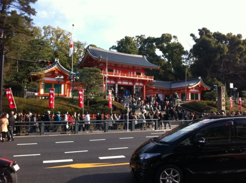 新年あけましておめでとうございます。本年もよろしくお願い致します。今年の元旦は、家族で京都まで初詣に行ってきました。向かった先は、京都祇園の八坂神社。四条通りは、多くの初詣客が行き交っていて、予想していた通りの、たいへんな人出でした。でも、京都へ初詣というのも、しばらくぶりで、人混みの中にも、やはり、華やぎと活気を感じますね。八坂神社の中も、多くの人でありましたが、参拝するのに、行列を作って順番を待つということはなく、比較的スムーズに拝殿まで進み、参拝を終えることが出来ました。八坂神社といえば、その祭神が素戔嗚命(スサノオノミコト)です。スサノオという神は、荒ぶる神の代表ともいわれるほどの、とても強い神様というのが、その印象。疫病が流行した時、それを押さえるために、八坂神社の神官がスサノオの力に頼り、これを鎮めようとしたことが祇園祭の起源であるとされていて、そうした面では、荒々しい神でありながらも、近しい存在になっているように思います。さらに、スサノオには、もう一つ意外な側面があります。それは、スサノオは歌の神であるということ。スサノオは、始めて和歌を詠んだ、和歌の始祖であると言われていて、和歌の神様でもあるのです。スサノオといえば、ヤマタノオロチを退治したという話が有名ですが、この時、オロチに食ベられそうになっていた少女・櫛名田比売(クシナダヒメ)を助けだし、その後、スサノオはクシナダヒメと結婚をします。この時に、スサノオが詠んだというのが、日本で初めての和歌なのでした。 八雲立つ 出雲八重垣 妻籠に 八重垣作る その八重垣を八坂神社では、スサノオのこの故事に因み毎年、1月3日に「かるた始め」の祭典が行われています。八坂神社で参拝の後、その裏手にある円山公園に行きました。元旦は、快晴の天気にも恵まれ、清々しい年明けが迎えられたように思います。この一年が、穏やかな良い年になれば良いですね。 このブログとも、また今年一年、よろしくお付き合い頂けますよう、お願い申し上げます。