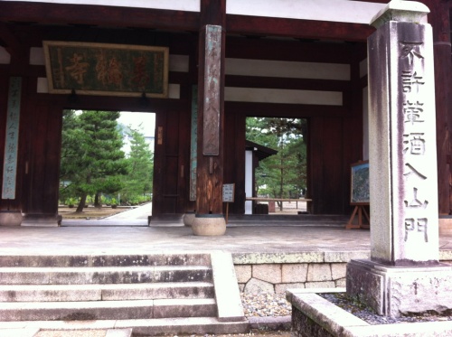 宇治・黄檗にある萬福寺。隠元禅師が開いた黄檗宗の禅宗寺院であります。隠元禅師という人は、江戸初期に、明末の中国から日本にやってきた中国僧で、明朝風の禅の様式を日本に伝え、当時の仏教に新風を吹き込んだ人であると云われています。禅宗とはいっても、既に日本で根付いていた臨済宗や曹洞宗が、日本化し独自の発展を遂げていたのに対して、この黄檗宗は、純粋な中国風の禅宗をそのまま伝えています。それだけあって、この萬福寺は隅々に至るまで、中国風にしつらえられていて、とてもエキゾチックな寺院になっています。寺の入口が、この総門。「不許葷酒入山門」という石碑が目につきますね。これは、葷酒(酒やくさいにおいを放つ野菜)を寺の中へ持ち込んではならないという意味なのだそうです。これらは修行の妨げになるということなのでしょう。禅宗寺院では、この文字が書かれているのをたまに見かけますね。総門をくぐって、しばらく行くと眼前に大きな門がそびえます。萬福寺の山門です。山門から中に入ると、さすが、ここが黄檗宗の総本山というだけあって、かなり、ゆったりと、広々とした境内が広がっています。正面に建つ、まず最初の建物が天王殿。日本の寺院で、天王殿という建物は見かけることがないですが、これも中国独特のもので、寺院の玄関にあたるもの。中国の寺院では、一般的なものなのだそうです。この天王殿に祀られているのが、萬福寺のトレードマークとも言える布袋の像。布袋さんというのは、弥勒菩薩の化身であるとされているそうですね。でも、そのユーモラスな姿からして、ちょっと意外です。そして、この天王殿の後に、大雄宝殿・法堂といった伽藍が続きます。大雄宝殿という建物が、この寺の本尊である釈迦如来が祀られているところ。日本の寺院でいうところの、本堂にあたります。一方、法堂の建物は、卍くずしという、意匠を凝らした勾欄が印象的です。法堂から望む大雄宝殿です。この眺めも、どことなく絵になりますね。この大雄宝殿の南側、斎堂と呼ばれている、僧侶が食事をするための建物が建てられています。その前に吊るされているのが、木製の大きな魚。これは、開版と呼ばれているもので、時を報せるための法具なのだそうです。これが木魚の原型になった、とも云われているもので、木魚を日本に伝えたのも、隠元禅師だったのだといいます。隠元禅師が日本にもたらしたものというのは、他にもいくつかあるようですね。その代表的なものが、隠元豆。天王殿の入口近くにも、隠元豆が植えられていました。他に、スイカ、レンコン、タケノコなども、隠元禅師により、日本に伝えられたものなのだそうです。もうひとつ、隠元禅師といえば、煎茶道の開祖という側面もあります。煎茶道というのは、煎茶や玉露を飲みながら歓談するということを本旨としている茶道の流派。抹茶を用いた従来の茶道というのが、どうしても作法にとらわれがちであったのに対して、形式にとらわれず、煎茶を飲みながら清談を交わすということに主眼がおかれていて、江戸時代以降、主に文人の間で、人気を集めたのだそうです。隠元禅師が始めた煎茶道は、その後、これも萬福寺の僧侶であった高遊外という人により大成されていくことになり、さらに、広く一般に普及していくこととなりました。萬福寺の境内には、売茶翁と呼ばれた高遊外を記念して、売茶堂という建物も建てられています。萬福寺の佇まい、色々なところが、本当に中国風です。萬福寺山門の傍らに、とある句碑が建てられています。そこに刻まれているのが、江戸後期の女流俳人・菊舎尼という人が詠んだ俳句です。山門を 出れば日本ぞ 茶摘み唄萬福寺を参詣した折に、純中国風の雰囲気の境内から、一歩、山門を出ると、そこからは、茶摘み唄が聞こえてきて、ふと我に返った。ここは日本・・・。そうなんですね。ここは、まさに別世界。萬福寺というところは、えもいわれぬほどに異国情緒があふれている、そんなお寺でありました。