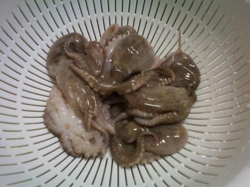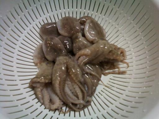こんにちは、ぐんかんです。今日、仕事帰りにふらっと生鮮市場に寄ってみたら・・・飯蛸が売ってました。そういや旬だからな~。 ぐんかん思わず買ってしまいました。(笑)節約生活は何処へやら。 まぁ、いいや。すっごく寒いのでやっぱり鍋でしょう!と言うことで、ぐんかんひとり鍋第三弾、「ひとり飯蛸のキムチ鍋」を作りました。飯蛸って結構下ごしらえが面倒くさいんですよね。内臓取って、嘴取って、目玉取って、足の先切って、ぬめり取ってって。アレ? 頭、簡単にめくれちゃった。 あっ!内臓ないぞう。(笑)嘴も取ってある! 気が利くじゃんか、生鮮市場!!後は、目玉を取ります。 目の横に切込みを入れて・・・目玉を外から押して、切込みから押し出します。飯蛸の足先は煮ると固くなるので、適当な長さで切ってやります。なんか、ぬめりもあらかた取ってあるみたい。 仕上げに軽くぬめり取りをします。粗塩を振ってよく揉みます。仕上げに水でよく洗います。 これで飯蛸の下ごしらえは完了。ぐんかんの冬のマブダチ、ひとり用土鍋に水とつゆの素を入れます。そして、キムチをドバっと投入。(笑)飯蛸を入れて、豆腐、長ネギ、ニンニン切りの椎茸を入れます。火にかけて、沸騰したら火を弱め、そのまま15分程煮込みます。完成~! 生鮮市場に豆腐が小さいおぼろ豆腐しか残ってなかったんです。やっぱり崩れたか・・・。皿に取って、「いただきまーす!」飯蛸、プリプリでウマウマ~♪ 汁も凄い蛸のダシが出てるぅ!!ふぅ、あったまりますなぁ~。(笑)以上、ぐんかんの「ぐんかんひとり鍋part3」でした。