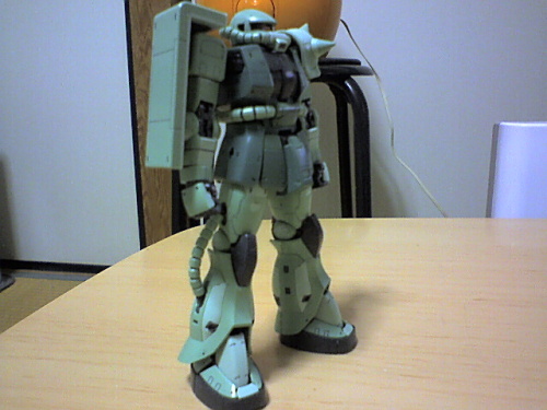 こんにちは、ぐんかんです。RG 量産型ザクII製作記の第3回。 では、早速いってみましょ~!ボディに彫られているパーティションラインに墨入れをしました。全部のパーティションラインに墨入れすると、もっとゴチャゴチャするかと思ったんですが、ザクIIは緑色なんで意外といい感じです。キットには「指揮官機用ヘッドパーツ」も付属します。アンテナも「ブレード型」と「スタビライザー型」が選べます。ぐんかんは緑のザクIIは、一般兵用のつるつる頭の方が好きですね。(笑)シールも貼りました。今回はトップコートは吹かないので、これで一応完成です。数字のシールは機体番号ではなく、型式番号の「06F」にしました。何が凄いって、1/144なのにモノアイが可動して、コクピットハッチが開閉するのはスゴイですよ。足の可動域が大きいので、ザクマシンガンを持ってこんなポーズもとれます。ザクバズーカを持たせてみました。ヒートホークを構えて・・・。ヒートホークの放熱状態を再現するには、塗装が必要みたいですね。 フル装備状態です。いやぁ~、作りごたえありました!イイなぁ、「リアルグレード」。 1/144だって馬鹿に出来ないクオリティです。「リアルグレード」シリーズ、揃えたくなっちゃったなぁ。(笑)以上、ぐんかんの「RG 量産型ザクII製作記その3。」でした。このブログ記事に関する楽天プロフィールでのつぶやきはこちら↓こちらからコメント出来ます!