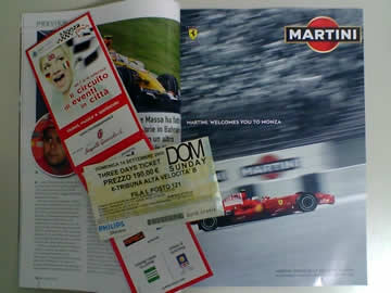 全世界10億人のティフォージの皆さま、こんにちは!私は、先週末ミラノ郊外にあるティフォージの聖地へ行ってまいりました。▲Formula 1 Gran Premio d'Italia 2008イタリアGPといえば、みんなTシャツ姿でカメラに映っている青空高い秋の一大イベントで、年によっては気温が30℃を越えることもあると思って半袖ばかりを持っていったら、何故か今年はまんまと雨が降りました(笑)。挙句の果てに、持っていったデジカメがミラノ中央駅で壊れてしまい、グランプリの写真が一点もない、とんでもない旅行でした。でも、まあ、写真が目的で行ったわけではありませんし、どうしても写真が撮りたければ、また来年行けばいいことですね(笑)。さて、そのモンツァ・サーキット。国立公園のなかにあるサーキットとして有名です。ミラノ・チェントラーレから臨時列車に乗ると、ひとつめがモンツァ駅、ふたつめがレズモ駅です。どちらで降りてもOKなのですが、モンツァ駅は国立公園の入り口に位置していて、サーキットまでは歩いて小一時間程度かかります。次のレズモは、名前のとおりレズモ・コーナーのすぐ近くにあり、田舎の無人駅を出て駅前の道を渡ると目の前はサーキットの駐車場という近さ。ゲートを入ってもサーキットまでは延々と歩かないといけないので、素直にレズモで降りました(笑)。そのレズモのゲートというのが、これまたコンクリート塀についた唯の鉄扉で、両脇にある大木に「レズモ入口」と横断幕が掛かっているだけ!いかにもイタリアで、シチリアのバスを思い出しました(笑)。さて、そのゲートを押し競饅頭で潜り抜けると、地面は前日からの雨でぬかるんでおり、いわゆるサーキット裏の様相です。私は久しぶりに鈴鹿サーキットを思い出しました。足元に気をつけながら歩いていると、フォーミュラカーの排気音が聞こえてきます。GP2の決勝レースです。GP2は初観戦でしたが、かなり速いクルマでFポンよりもレベルは高そうです。このあたり外人さんはやはり血の色が違うようです。ー ー ー ー ー ー ー ー ー ー ー ー ー今回、チケットを取ったのは、モンツァの名物第1コーナーで、6A、6B、6Cと繋がる大スタンドの真ん中。300km/hからのフルブレーキングと旋回、ストレートへの加速まで眺めることができる絶好の場所でしたし、トーロ・ロッソの2台がフロント2列からスタートするのもユニークで楽しいレース観戦となりました。レースはご存知の通り、ローリングスタートで始まったので、スタートの大混乱もなくスムーズなレース進行で思う存分クルマの動きをみることができました。ウェットコンディションでのアウトートドロモの第1コーナーをみていて気がついたのは、やはりウェットで速いドライバーはクルマのコントロールが上手だということです。1位ヴェッテル、3位クビサ、4位アロンソ、7位ハミルトンあたりの選手は、6速ダウンシフトして入る第1コーナーでも完全にマシンをコントロールしていました。赤いクルマの2台は、クルマのセットアップが今イチの様子で、ドライバーがクルマに少々梃子摺っていたようです。完全なウェットか完全なドライのどちらかのコンディションだったら、もっと上位を走っていたことでしょう。中嶋一貴選手は、とても安定していて感心しました。でも、チームメイトとはペースが違いすぎていたので、手足よりも頭の仕事量が多いような印象。もっとアグレッシブに速いペースで物事を進めることが必要かもしれません。ホンダの2台はベテランふたりが乗っているだけあって、濡れた路面など関係ないくらい上手でしたので、あとはハードウェアの問題だと思います。さてさて肝心のライコネン選手ですが、実際に生でみてもやはりハミルトン選手やアロンソ選手のように、闘志を剥き出しで走っているようには見えません。走るととても速いし、抜くべきときにはバトルを見せてくれるのですが、ガッツとか、気迫のようなものが外に伝わってこないので、近寄っても追抜いても害がないようなクリーンな雰囲気です。周囲のドライバーも「ただフェラーリが走っている」という気持ちでしょう。イタリアのメディアはマッサ一色。ティフォージの会話もマッサとハミルトンでした。レース終了後、例によってコースを歩き、スタート地点まで行ってみましたが、例年と違ってちょっとクールなイタリアGPでした。これも、まあ、珍しいグランプリに遭遇できて価値があると思っています(笑)。帰国のために空港に行ったら、マルペンサではF1ジャーナリストの赤井邦彦さん、成田空港ではフジテレビの解説をしている元F1ドライバーの片山右京さんと出会いました。少しお話をしましたが、お二人とも情熱的かつ紳士的で、ときおりチャーミングな一流の素晴らしい方々でした。感謝!