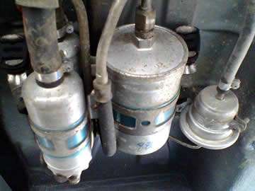 先週に引き続き、アシグルマの24ヶ月点検をしました。今週のテーマは「燃料ポンプの交換」(笑)。最近の多くのクルマは、燃料ポンプがインタンク式なので、よっぽど燃料スカスカで走っていない限り、廃車にするまで交換するようなことはないと思いますけれども、私のアシグルマは燃料ポンプを交換することを前提に設計されていたようで、フューエルライン上に燃料ポンプ→燃料フィルターの順で設置されています。▲これが燃料ポンプと燃料フィルター。下が進行方向。少し前まで何の異音もなく調子よく走っていたのですが、つい先週からクルマの外で「ジー」というモーターの作動音のようなものが聞こえてくるようになり、車外を一周して確かめたら燃料ポンプだったという訳です。この燃料ポンプは、ちょうど右リアシートの下に設置されていました。こいつの交換です。取り寄せたのは、燃料ポンプと燃料フィルター。驚くのはその価格で、ディーラー経由だと燃料ポンプは定価47,985円 燃料フィルターは定価9,135円ですが、燃料ポンプは2個使用しているので大きな部品だけで10万円超ですから、出るところに出て、細かいワッシャや燃料ホース、ナットなども含めて「よろしくお願いします」というと、20万円コースになってしまいそうです!(笑)▲取り寄せた燃料ポンプ(×2)と燃料フィルター。銅製のワッシャは絶対交換。クルマを持ち上げてアンダーカバーを外すと、燃料ポンプのユニットが見えてきます。看板を背負った工場なら一式交換、町工場ならポンプとフィルターのみ交換でしょう。こういうときに何をすべきか決められる選択眼が、とても重要ですね。フィルターを最初に交換して、後にポンプを交換するのが着手しやすくセオリーのようです。こういうところが一目見るだけで分かるのがメルセデスの良いところです。▲交換した燃料フィルター。ちなみに交換したものはドイツ製。新品はスペイン製でした。ここにもコストダウンの波が到来しているのでしょうか?▲燃料ポンプ。こちらはドイツ製でした(笑)。ボルトやナット類は、例によって「ガッチリ」締め付けられているので、仰向けで作業するのは骨が折れます。この作業のおかげで、翌日から首やら背中やらが筋肉痛です(笑)フューエルラインを緩めると、ガソリンが空から降ってくるので(笑)、その都度作業は一時休止。ガソリンの近くで火花を散らしたらこちらが燃えてしまうので、焦りは禁物ですね。クリップで止めつつある程度流してから、それ以上落ちてこないようにラインの向きを変えてやったり、ウエスで拭いたりして作業再開。途中で本物の雨も降ってきて(笑)、作業は大変でしたが無事交換は終了しました。ネット上の情報をみると、多くの方が調子が良くなったと書いていらっしゃいますが、確かに燃圧がアップしたことは実感できますけれど、ターボが掛かるほどではないようです。やはり、機械は正常動作と信頼性が第一ですね(笑)。感謝!