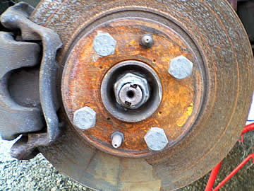 夏にオーダーしたクラッチアッセンブリーがクリスマス前に届き、年末年始のけじめも過ぎたところでやってくる成人の日の連休。本当は暖かくなってからやりたいな、でも何かあったらまた半年先になってしまうなと思って、冷たい風の吹きつけるなかいよいよ左フェンダー内と格闘が始まりました。以前にも書きましたが、Lancia Yは直列4気筒横置きのFFですから、エンジン - クラッチ - ギアボックス - デフと繋がる所謂トランスアクスル方式で、クラッチ交換をしたい場合にはまずドライヴシャフトを外さなくてはなりません。ドライヴシャフトを外すには、フロントアップライトをバラさなくてはならないので、タイヤを外して取り掛かるのは第一にハブナットを緩めることでございます。▲真ん中のナットがハブナットですこのハブナットですが、当然勝手に緩んだりしては困るので、カシメが打ってありまして、緩めるためには更に最初にカシメを緩めなければなりません。なりませんがなりませんのですよ。全然。まったく。マイナスドライバーを入れてこじったり、細いバールを試したり、センターポンチを突っ込んだり、いろいろやりましたが板厚2mmのナットはビクともしません。国産車だとこの辺りは1mm強というところ、こんなところだけ真面目に頑張っていて一体全体イタ車はどうなっているんだ、という感が益々高まってテンションも上がります。テンションも上がれば、どうせ相手は消耗品だと割り切ってバーナーで炙って軟らかくならないかとか、いっそグラインダーでギャンギャンやってねじを切ってやろうかとか、思いつく限りやってみたのですが、梃子にも動きませんでした。いや冗談じゃなく。そういう難儀な2週にも亘る週末の格闘の後、ついに自分でクラッチ交換をやる夢(なんだそれ)は果たせず、断念という結末に相成った訳でございます。そうなったら、私のような通り掛かりの素人が時間も労力も際限なくやろうなどと考えているプランAを変更して、素敵な笑顔と片手で1~2日で終えてしまうベテラン仕事のプランBにスイッチ。マセラティの神様のように慕われイタ車ばかり扱っている整備工場に直行です。ここには以前にも車両を見せたことがあり、話しはツーカーで打合せは5分で終了。春頃に乗り出そうと思っているので2ヶ月くらいのうちに仕事の合間で片付けてくれればいいよ、とお願いしたら1週間もかからずに出来上がってきてしまいました。普通は仕上がりを舐めるように見て舞い上がって喜ぶのがお客様というものですが、こちらがみるのは交換したクラッチディスクで、あろうことかダイヤフラム・スプリングの2,3本は先が折れて欠損していました。これが当たってゴリッという異音になっていたのです。こうなると、おおよそのクラッチの寿命も見当がついて一石二鳥なのかどうか分かりませんが、本来は自分でやる予定だったブレーキフルードの交換もお願いしてしまって、出撃整備が完了。いよいよヘッドライトレンズの磨きでもやろうかな。感謝!