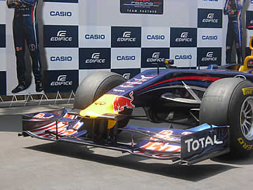 日本中の皆さまが大々的な新聞報道でご存知の「レッドブル・エナジー・フォー・ジャパン」は、横浜元町の公道走行が大成功に終わったことで、東日本大震災復興支援のチャリティープロモーションが上首尾に終わり、またレーシングカーがイベントで一般公道を走行できたことによって、ようやく日本も先進国の仲間入りができました。目出度いです。そのレッドブルのF1マシンですが、よくみると去年のクルマでも勿論今年のクルマでもなく、一体いつのものだろうと思って本日もまんまと駅の東口まで見に行ってしまいました(笑)。きょう新宿駅の東口で展示されたマシンは、昨日横浜で一昨日は幕張で走ったF1マシンそのものですが、展示のためだけに新品のタイヤが付けられてピレッリのロゴまで整えられているのが、いかにもF1のプロモーションといった趣きです。今日のイベントは、カシオの最新リストウォッチEDIDICEの発表を記念したもので、新宿駅の東口は大勢の人で賑わい最前列にはカメラを構えたお兄さんたち(私もか)がレンズの砲列を向けており、朝からイベントは大成功の様子です。テントの裏側には、チームマネージャのトニーがいたので早速疑問をぶつけてみると、正解は2006年型RB2に2009年型のRB5のパーツを取付け改造したハイブリッドカーで、デイヴィッド・クルタード選手のレースカーだったものだそうです。それなら、さしずめRB2.5というところでしょうか。無料でワンショット撮影してくれるというので、さっそく列に並んで1枚お願いいたしました(笑)。暑く晴れ上がった現地では、レッドブル・ジャパンの皆さまが恒例の炊き出しならぬ差し入れをして下さって、盛り上がったイベントの熱に涼も提供してもらえるサービスぶり♪ちなみに、このチームはオーストラリアから始まってアメリカ、イギリス、ドイツ、インド等々の国々をプロモーションしつつ、その間にチーム本拠地に戻ったりと大忙しだそうです。来週は香港で公道走行だって!感謝!